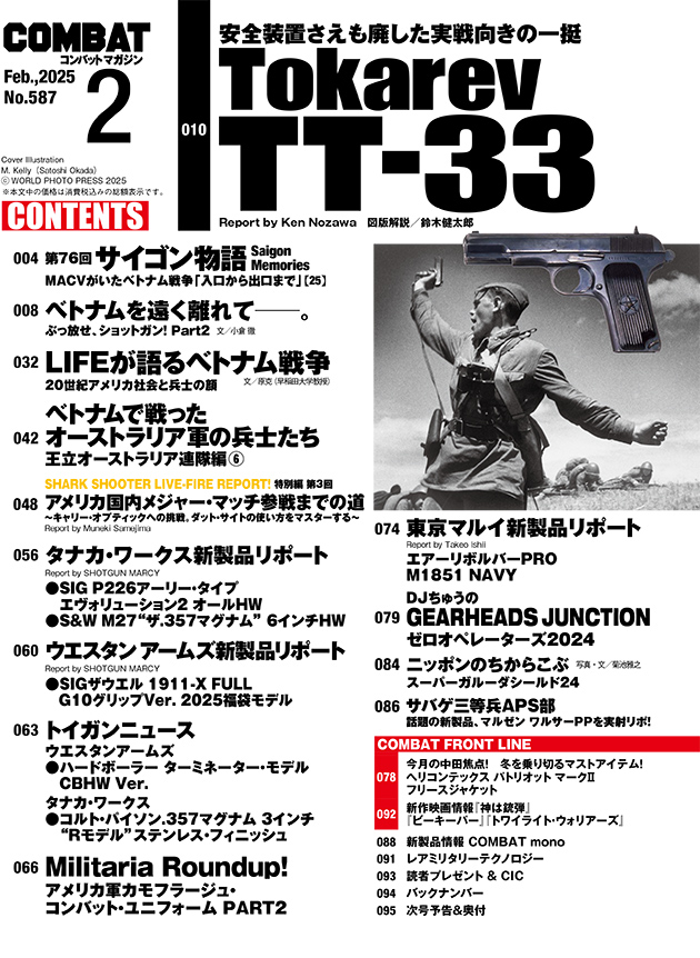 その他、ベトナム戦争関連のコラム、自衛隊の“現在”をリポートする「ニッポンの力こぶ」、老眼に必死にあらがうおじさん3人がマルゼンのワルサーPPを実射リポートする「サバゲ三等兵APS部」など、今月も読み応え重量級、年末年始のお供に持ってこいの内容(※個人の感想です)で、お届けします!