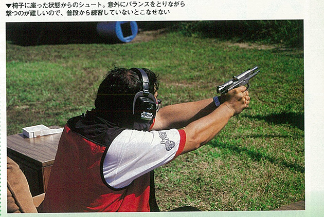 フレーム、スライドともにステンレス製で、スライドの引き心地やトリガープルはスムーズそのもの。命中精度も高く(と言えるほどの射撃技術は持ち合わせていないですが…)、メタルソリッドフレームオートらしい重量感と硬質感はまさに「拳銃」そのもの。持っているだけで自分が上手くなったかのような錯覚を覚えるほど完成度の高い銃でした。写真はアームズマガジン2001年1月号に掲載された記事をスキャンしたもので、この時はありがたいことにパフォーマンスセンターのチームシャツも着させてもらいきました。