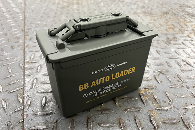 今回発売されたBBオートローダーは電動給弾式なので従来のBBローダーに比べて手間や時間は大幅に減ります。外装はアモ缶をイメージしていて装弾数は1,600発。1秒間に9発の速さで給弾されます。付属のアダプターを用いることで、東京マルイ製の電動ガンやガスブローバックガン、エアコッキングガン用のマガジンに対応できます。実際に使ってみると、給弾スピードの速さはもちろん最終弾まで淀みなくトルクフルに給弾できるのはさすが東京マルイだと思いました。特にマガジンフォロースプリングのテンションが強めなガスブローバックガンのマガジンがスムーズに給弾できるのは嬉しいです。