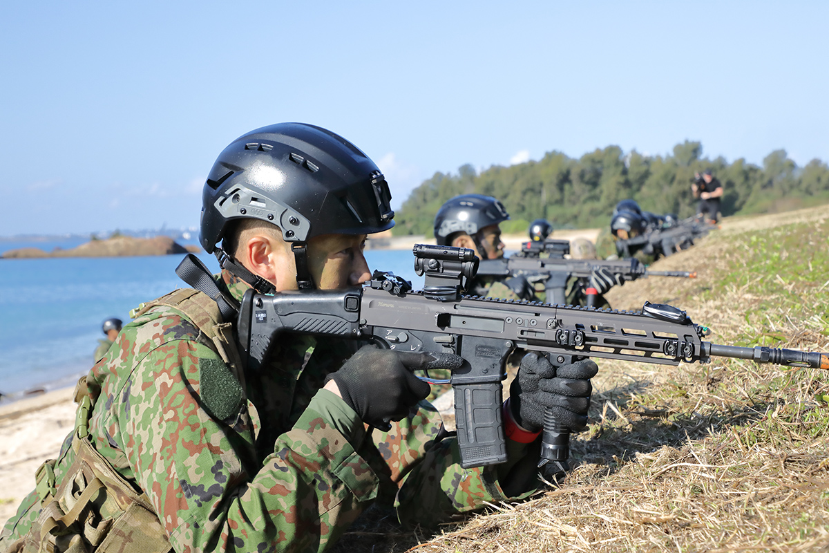 なんと言っても今回の目玉は遂にその全貌を顕した「市街地専用訓練用教材/20式5.56mm小銃型エアガン」!関係各所への粘り強い交渉の結果、想像を超えるご理解・ご協力を頂き、紙媒体・ネット含む全メディアで唯一、本誌SATマガジンだけがレポート用現物サンプルの借り受けに成功しました!